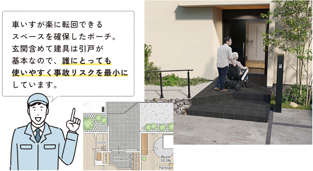 今の暮らしやすさと将来の介護のしやすさの両方を考えて設計された住宅です。